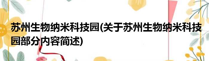 苏州生物纳米科技园(关于苏州生物纳米科技园部分内容简述)