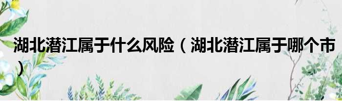 大家好,小活来为大家解答以上的问题。湖北潜江属于什么风险,湖北潜江属于哪个市这个很多人还不知道,现在让我们一起来看看吧!