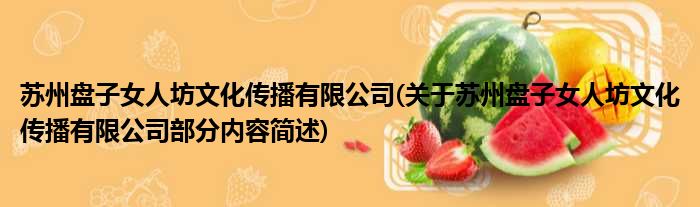 苏州盘子女人坊文化传播有限公司(关于苏州盘子女人坊文化传播有限公司部分内容简述)