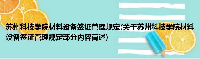 苏州科技学院材料设备签证管理规定(关于苏州科技学院材料设备签证管理规定部分内容简述)