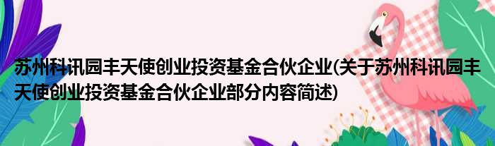 苏州科讯园丰天使创业投资基金合伙企业(关于苏州科讯园丰天使创业投资基金合伙企业部分内容简述)