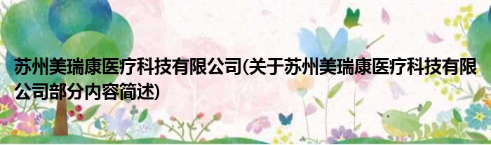 苏州美瑞康医疗科技有限公司(关于苏州美瑞康医疗科技有限公司部分内容简述)