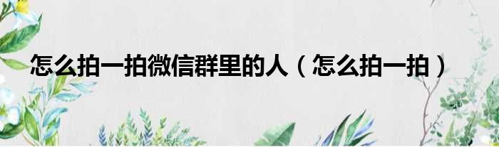 怎么拍一拍微信群里的人(怎么拍一拍)