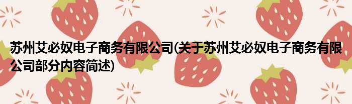 苏州艾必奴电子商务有限公司(关于苏州艾必奴电子商务有限公司部分内容简述)