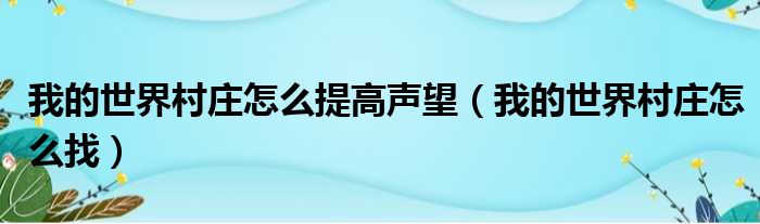 我的世界村庄怎么提高声望(我的世界村庄怎么找)