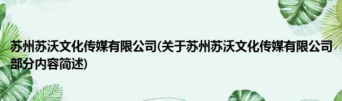 苏州苏沃文化传媒有限公司(关于苏州苏沃文化传媒有限公司部分内容简述)