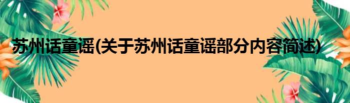 苏州话童谣(关于苏州话童谣部分内容简述)