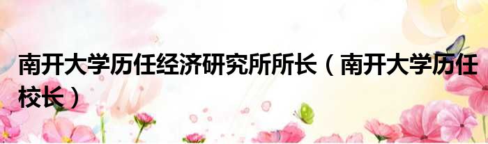 大家好,小活来为大家解答以上的问题。南开大学历任经济研究所所长,南开大学历任校长这个很多人还不知道,现在让我们一起来看看吧!