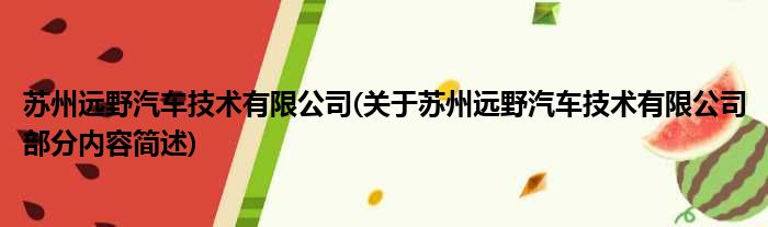 苏州远野汽车技术有限公司(关于苏州远野汽车技术有限公司部分内容简述)