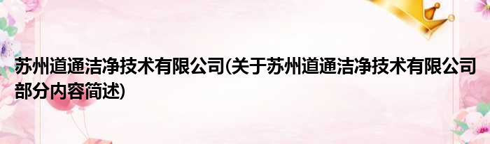 苏州道通洁净技术有限公司(关于苏州道通洁净技术有限公司部分内容简述)