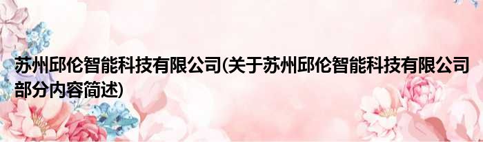 苏州邱伦智能科技有限公司(关于苏州邱伦智能科技有限公司部分内容简述)