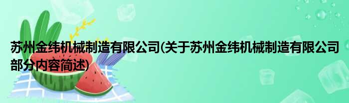 苏州金纬机械制造有限公司(关于苏州金纬机械制造有限公司部分内容简述)