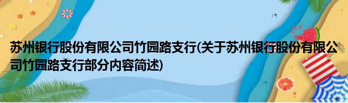 苏州银行股份有限公司竹园路支行(关于苏州银行股份有限公司竹园路支行部分内容简述)
