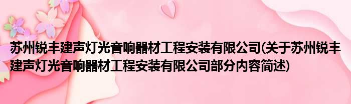 导读 大家好,今天小方来说说一篇关于苏州锐丰建声灯光音响器材工程安装有限公司,关于苏州锐丰建声灯光音响器材工程安装有限公司部分内容简述的