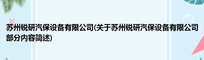 苏州锐研汽保设备有限公司(关于苏州锐研汽保设备有限公司部分内容简述)