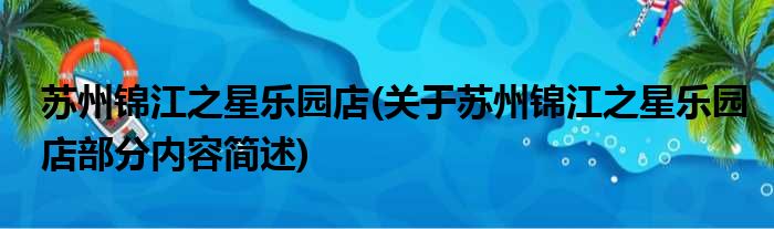 苏州锦江之星乐园店(关于苏州锦江之星乐园店部分内容简述)