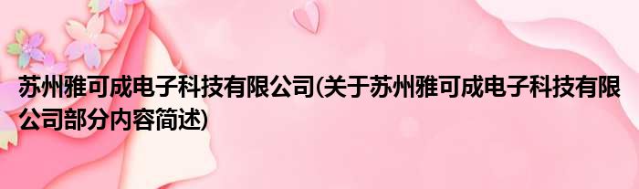 苏州雅可成电子科技有限公司(关于苏州雅可成电子科技有限公司部分内容简述)