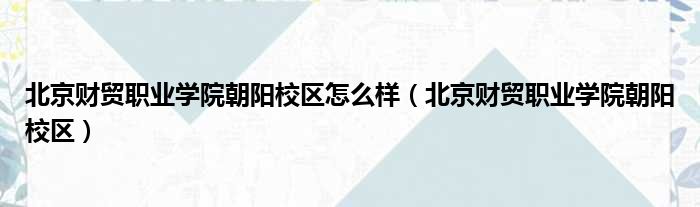 北京财贸职业学院朝阳校区怎么样(北京财贸职业学院朝阳校区)
