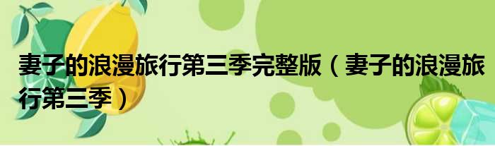 妻子的浪漫旅行第三季完整版(妻子的浪漫旅行第三季)