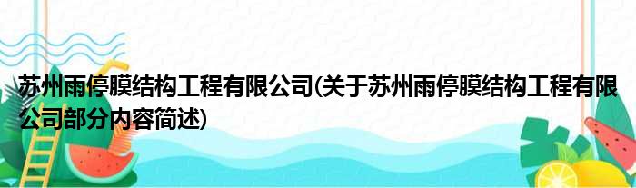 苏州雨停膜结构工程有限公司(关于苏州雨停膜结构工程有限公司部分内容简述)