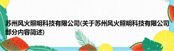 苏州风火照明科技有限公司(关于苏州风火照明科技有限公司部分内容简述)