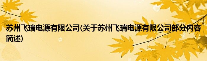 苏州飞瑞电源有限公司(关于苏州飞瑞电源有限公司部分内容简述)