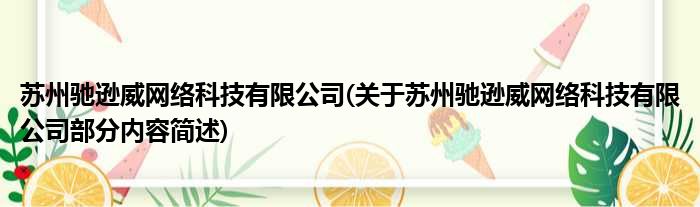 苏州驰逊威网络科技有限公司(关于苏州驰逊威网络科技有限公司部分内容简述)
