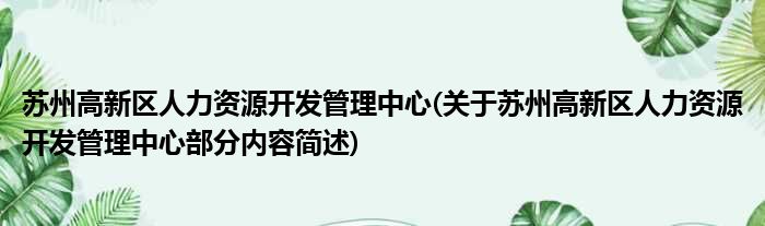 苏州高新区人力资源开发管理中心(关于苏州高新区人力资源开发管理中心部分内容简述)
