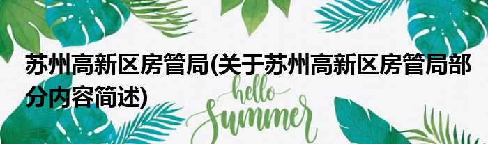 苏州高新区房管局(关于苏州高新区房管局部分内容简述)