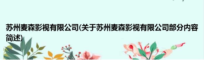 苏州麦森影视有限公司(关于苏州麦森影视有限公司部分内容简述)