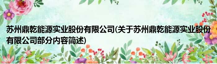 苏州鼎乾能源实业股份有限公司(关于苏州鼎乾能源实业股份有限公司部分内容简述)
