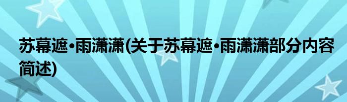 苏幕遮·雨潇潇(关于苏幕遮·雨潇潇部分内容简述)
