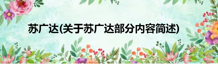 导读 大家好,今天小方来说说一篇关于苏广达,关于苏广达部分内容简述的文章,那么现在就为大家来简单介绍下,希望对各位小伙伴们有所帮助。