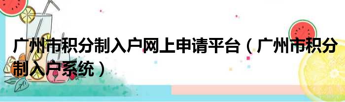 广州市积分制入户网上申请平台(广州市积分制入户系统)