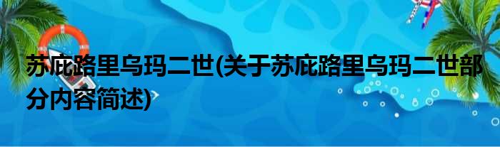 导读 大家好,今天小方来说说一篇关于苏庇路里乌玛二世,关于苏庇路里乌玛二世部分内容简述的文章,那么现在就为大家来简单介绍下,希望对各位小