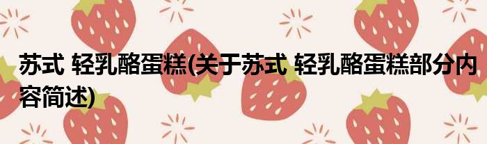 苏式 轻乳酪蛋糕(关于苏式 轻乳酪蛋糕部分内容简述)