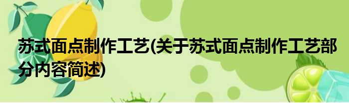 苏式面点制作工艺(关于苏式面点制作工艺部分内容简述)