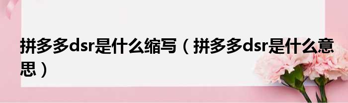 拼多多dsr是什么缩写(拼多多dsr是什么意思)