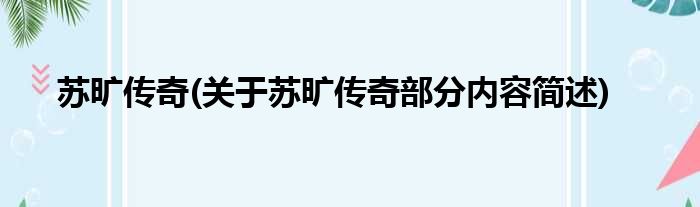 苏旷传奇(关于苏旷传奇部分内容简述)