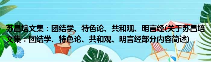 大家好,今天小方来说说一篇关于苏昌培文集:团结学、特色论、共和观、明言经,关于苏昌培文集:团结学、特色论、共和观、明言经部分内容简述的文章,那么现在就为大家来简单介绍下,希望对各位小伙伴们有所帮助。
