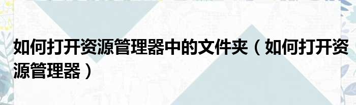 如何打开资源管理器中的文件夹(如何打开资源管理器)