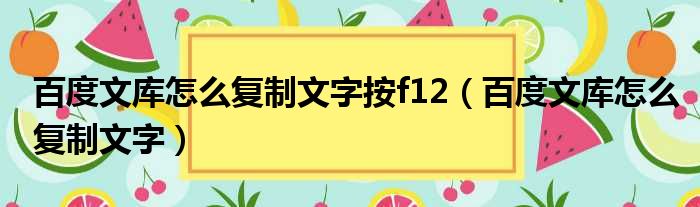 百度文库怎么复制文字按f12(百度文库怎么复制文字)