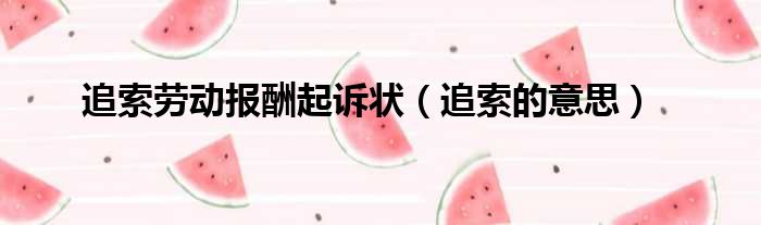 大家好,小活来为大家解答以上的问题。追索劳动报酬起诉状,追索的意思这个很多人还不知道,现在让我们一起来看看吧!
