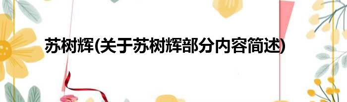 导读 大家好,今天小方来说说一篇关于苏树辉,关于苏树辉部分内容简述的文章,那么现在就为大家来简单介绍下,希望对各位小伙伴们有所帮助。