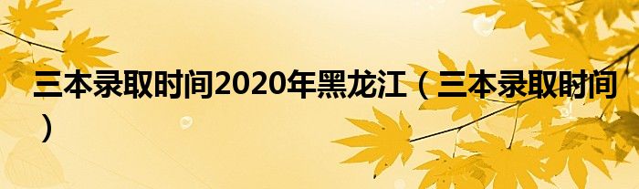 三本录取时间2020年黑龙江(三本录取时间)