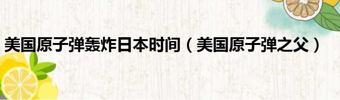 导读 大家好,小活来为大家解答以上的问题。美国原子弹轰炸日本时间,美国原子弹之父这个很多人还不知道,现在让我们一起来看看吧!1、美国的原子