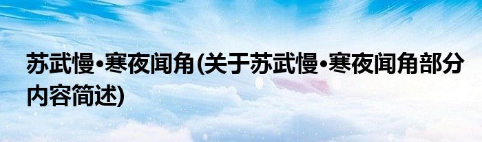 苏武慢·寒夜闻角(关于苏武慢·寒夜闻角部分内容简述)