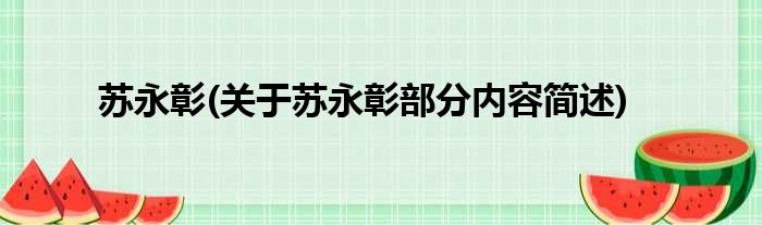 导读 大家好,今天小方来说说一篇关于苏永彰,关于苏永彰部分内容简述的文章,那么现在就为大家来简单介绍下,希望对各位小伙伴们有所帮助。
