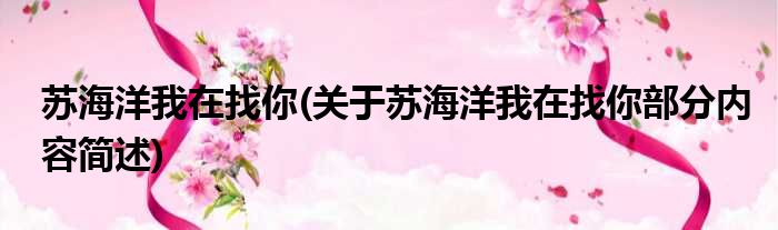 苏海洋我在找你(关于苏海洋我在找你部分内容简述)