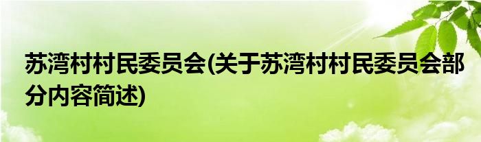 苏湾村村民委员会(关于苏湾村村民委员会部分内容简述)
